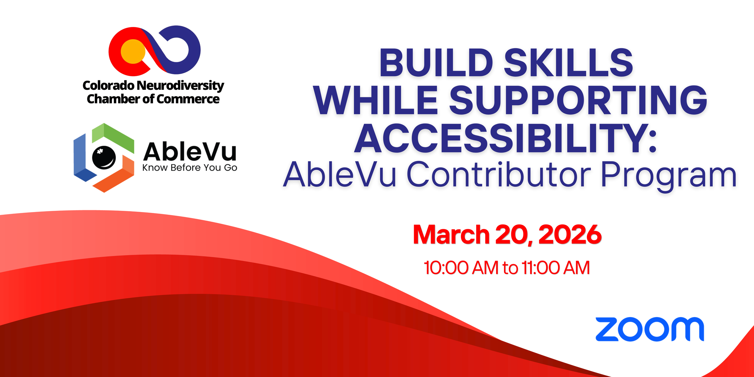 Join us to learn how the AbleVu Contributor Program works and how members of the CNDCC community can participate, gain experience, and support greater accessibility across Colorado.